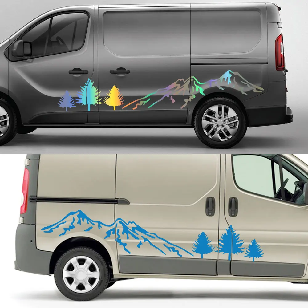 Наклейки с изображением гор автомобиля, виниловая пленка с обоих сторон для декора кузова автомобиля Renault Trafic, RV, Van