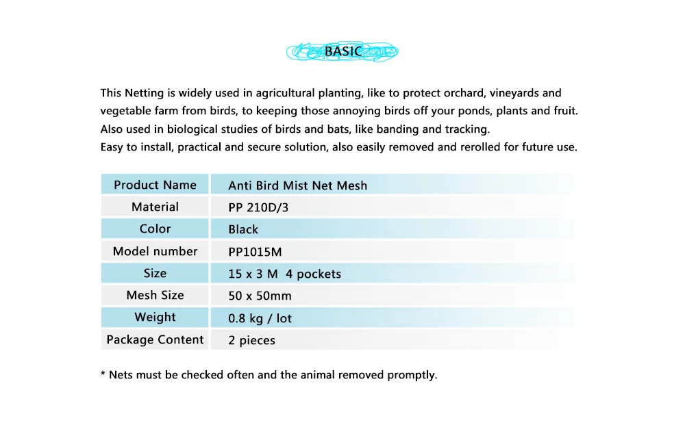 Высокое качество 9 м x 3 м 4 кармана 15 мм Отверстие Сад Анти птицы...