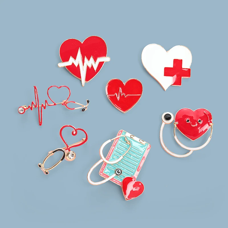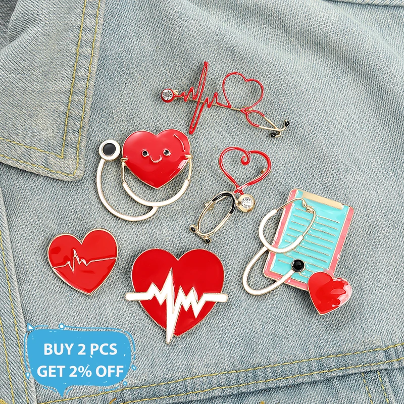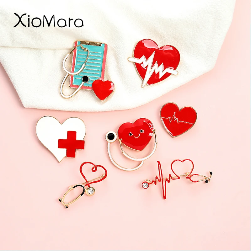Эмалированные булавки унисекс для воротника, с красным сердцем, для электрокардиограммы, подарок на выпускной, брошь в виде стетоскопа