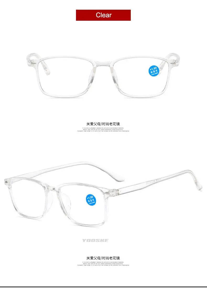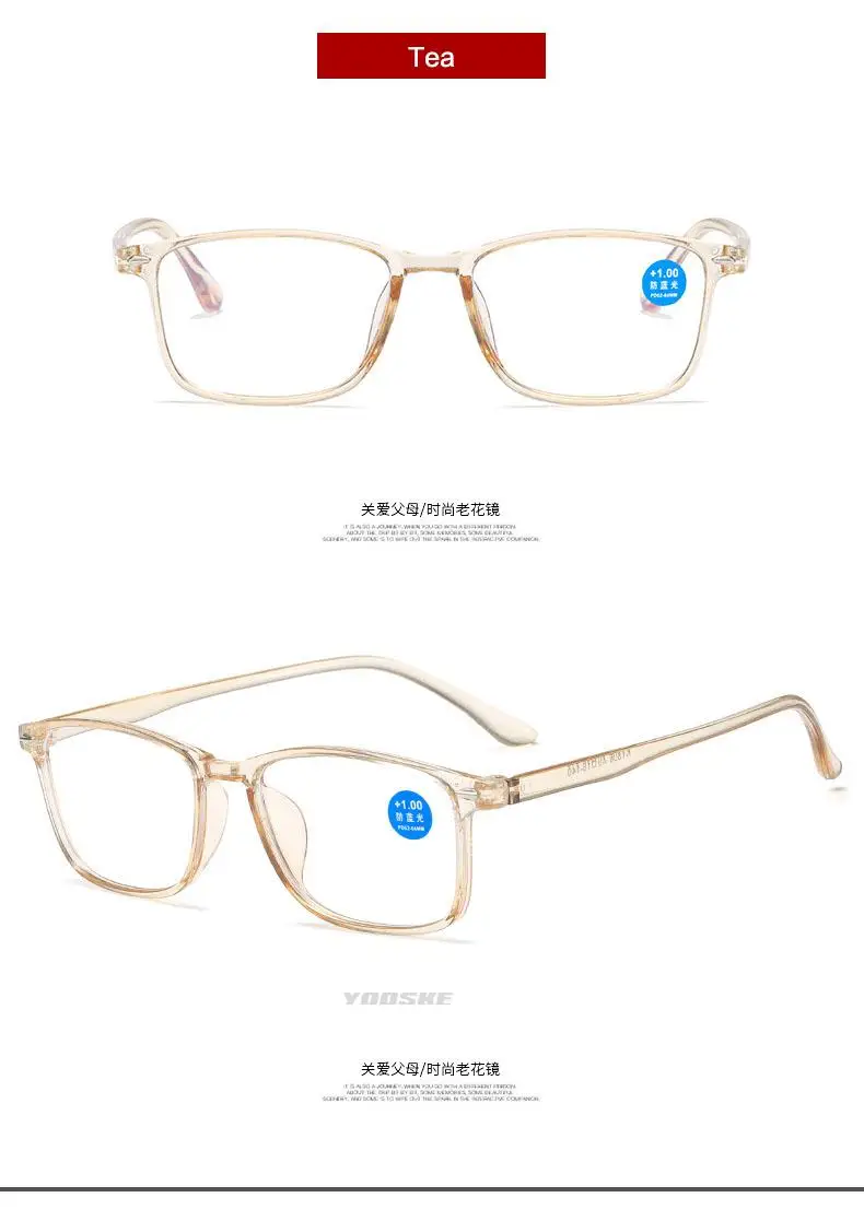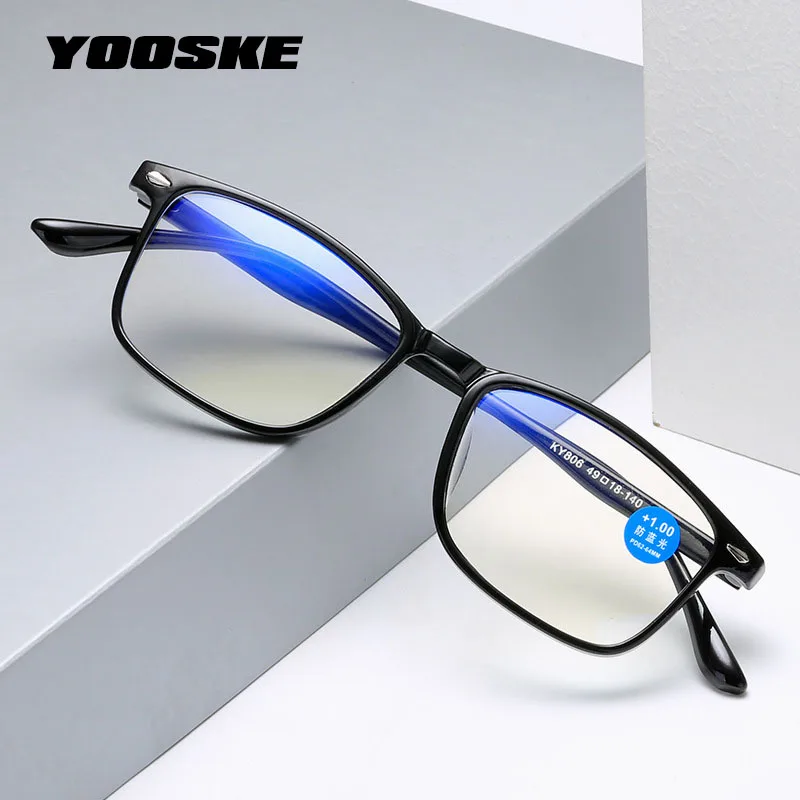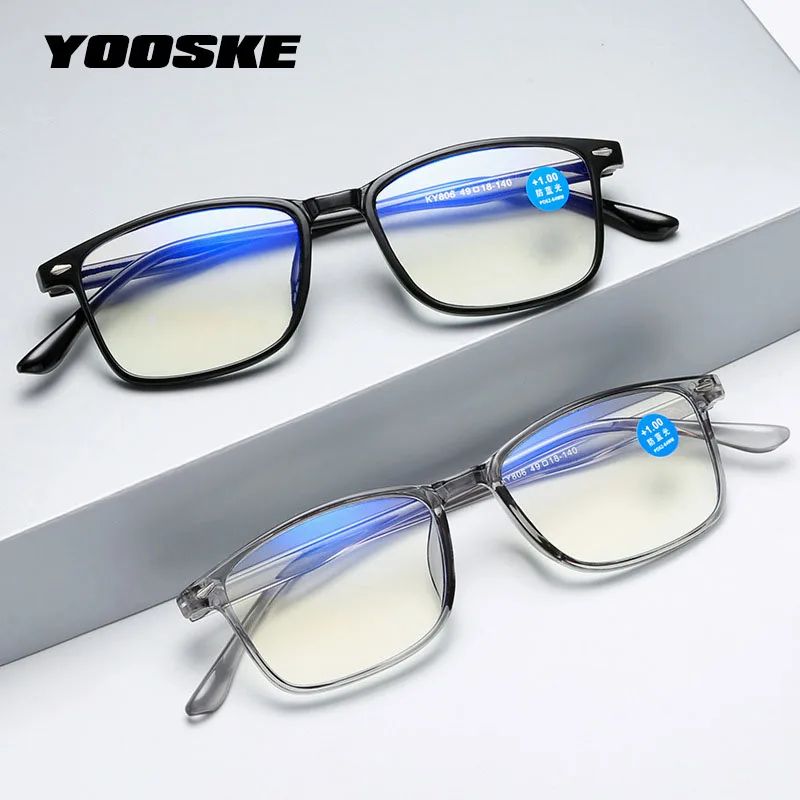 Очки для чтения YOOSKE для мужчин и женщин, ульсветильник квадратные пресбиопические Рецептурные очки с блокировкой сисветильник света, + 1,5 + 2,0 + 2,5 + 3,0 3,5