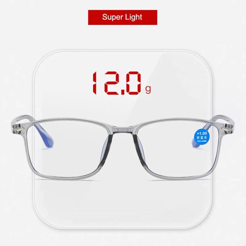 Ультра-светильник, квадратные очки для чтения для мужчин, женщин, мужчин, анти-синий светильник, дальнозоркие очки, очки + 100 + 150 + 200 + 250 + 300 + 350 + 400