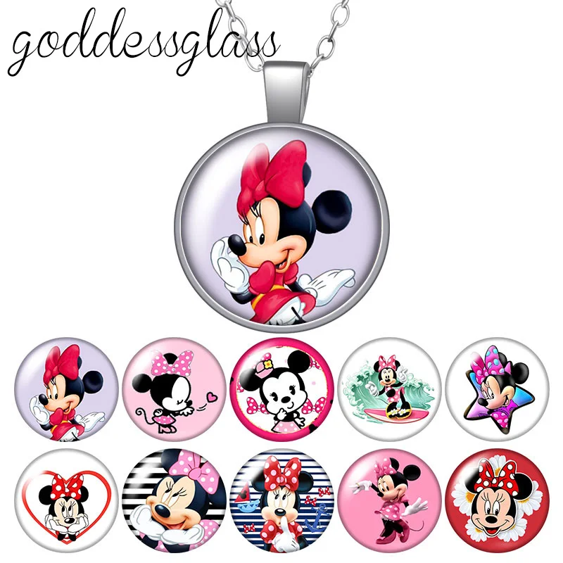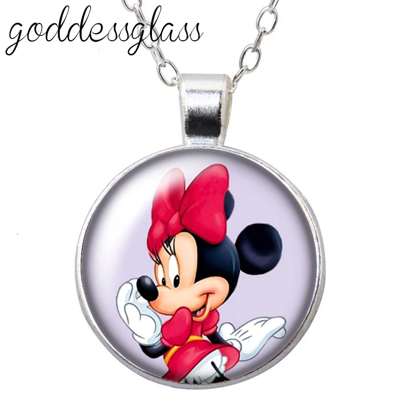 Ожерелье с подвеской Минни Маус, милая Подарочная круглая стеклянная подвеска с кабошоном с покрытием из серебра и кристаллов, подарочное Ювелирное Украшение