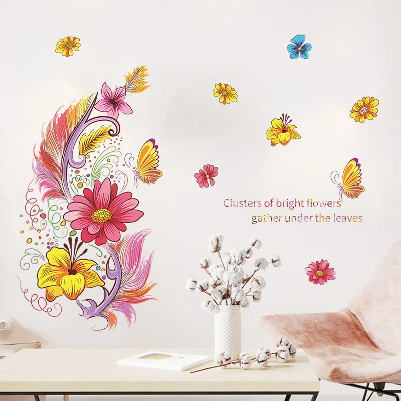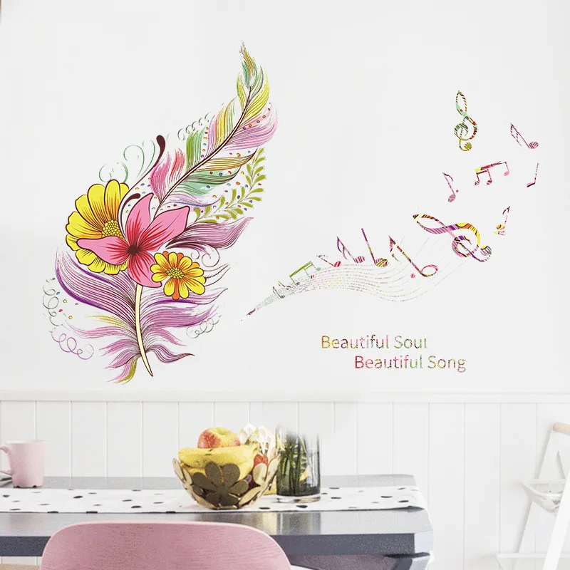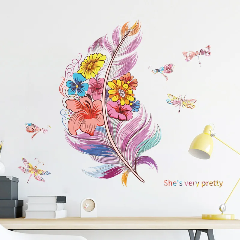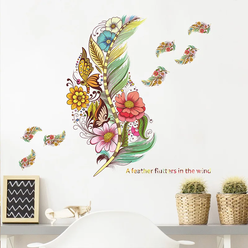 Настенные Стикеры с разноцветными перьями, украшения для дома, настенное украшение для детской комнаты сделай сам, фоновые Стикеры для декора телевизора, художественные декоративные
