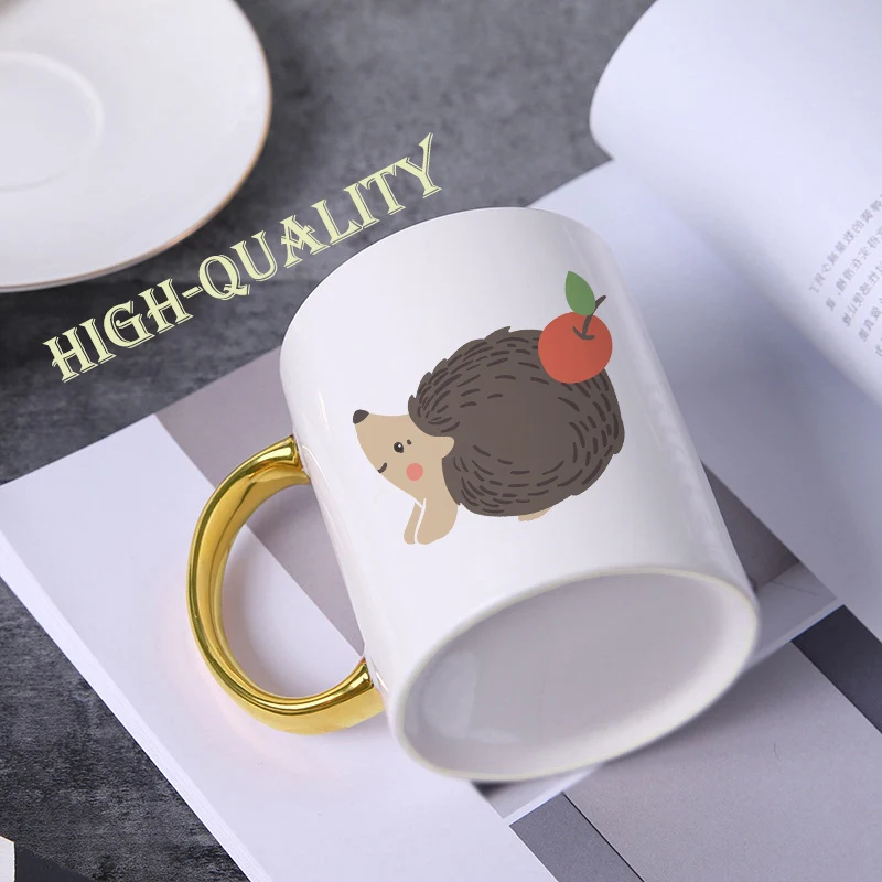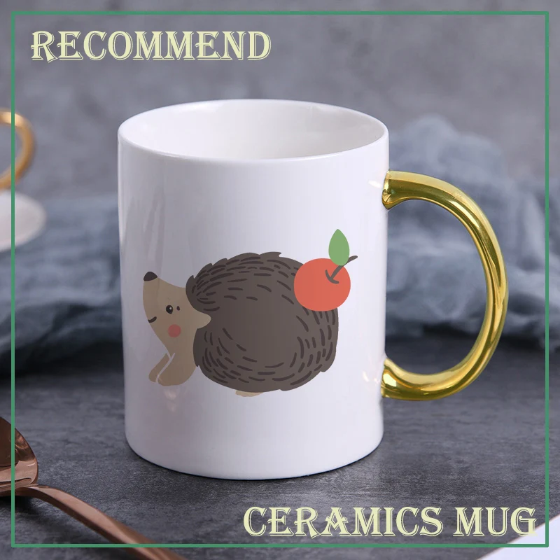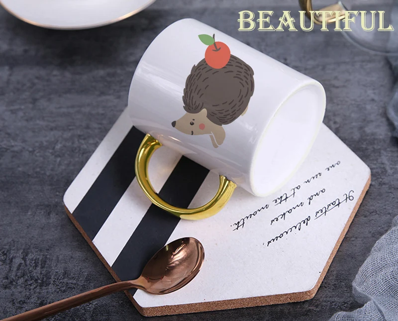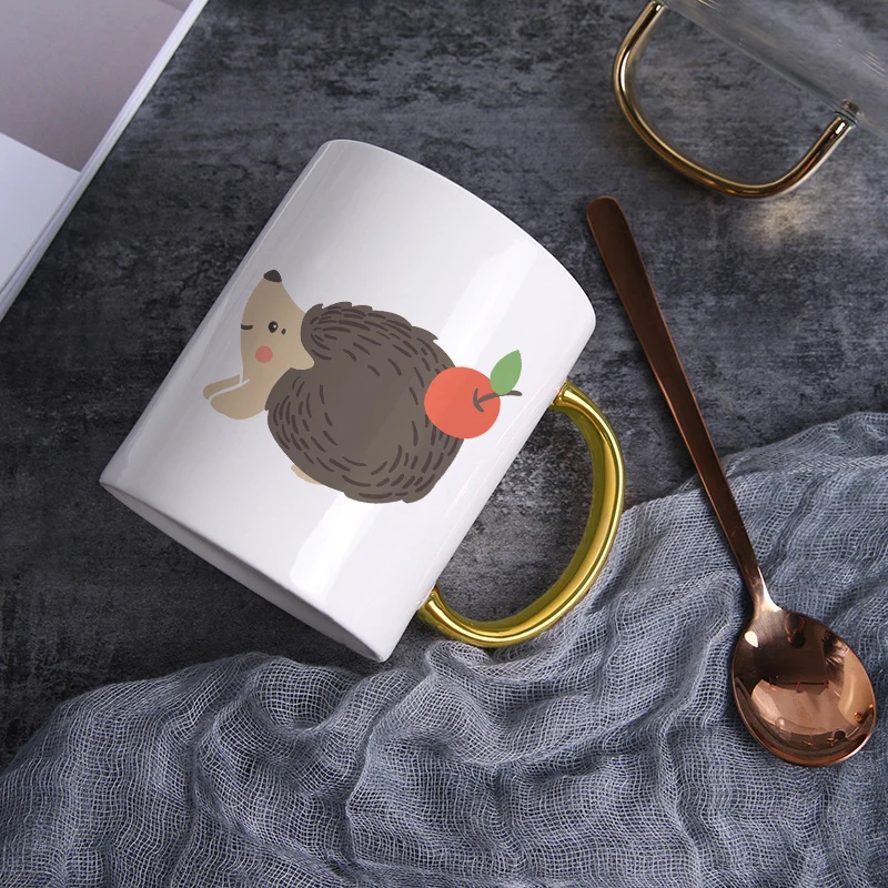 Кружка Керамическая для мальчика, с забавным ежиком, яблоком, белая фарфоровая кружка для дома и офиса, для молока, пива, кофе, чашка с цветным принтом, KTDW-069