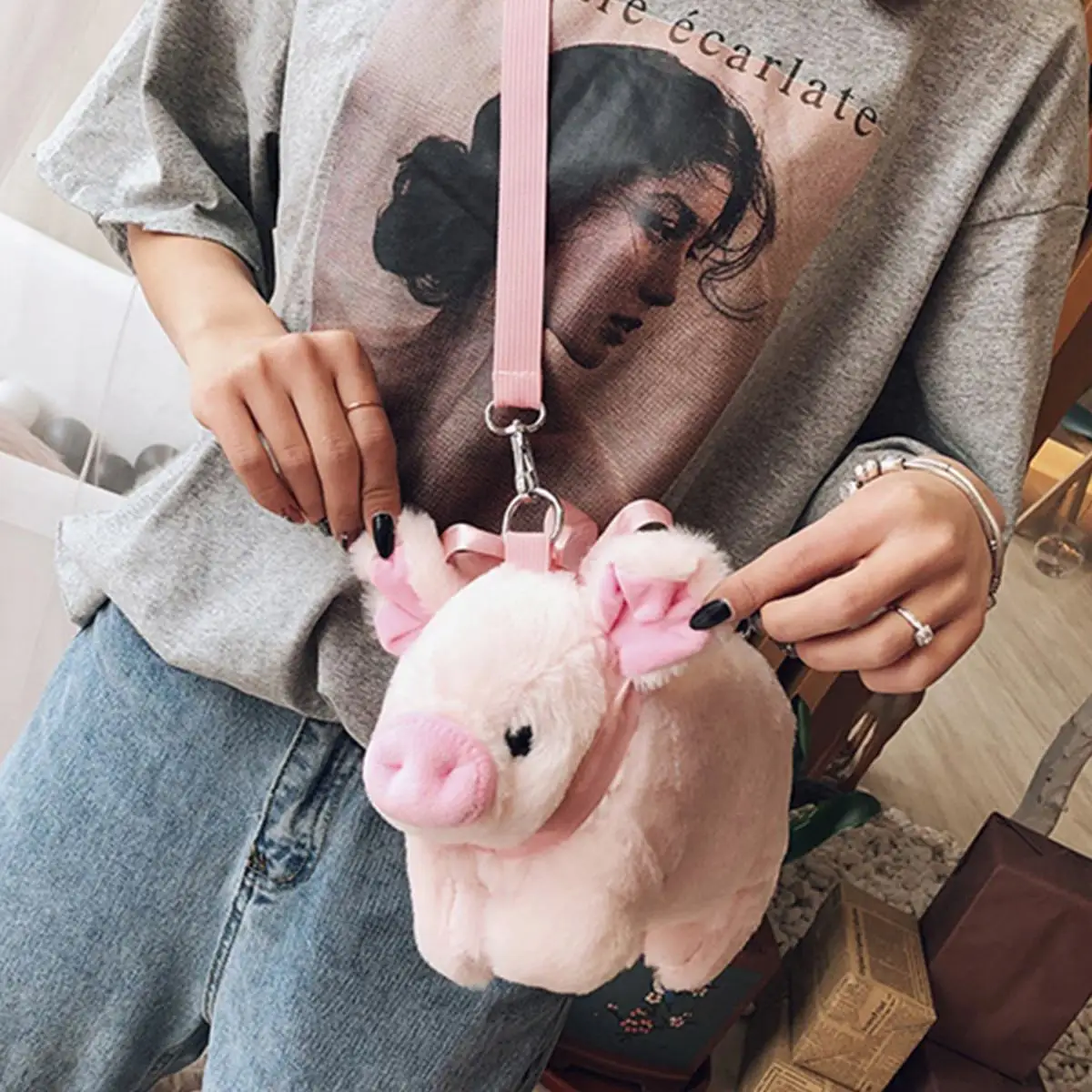 Милая пушистая розовая сумка в виде свиньи, женская сумка-слинг в виде мультяшной свиньи, пушистая сумка через плечо в виде животного, сумка на плечо, меховая мягкая полосатая Сумка, плюшевая сумка