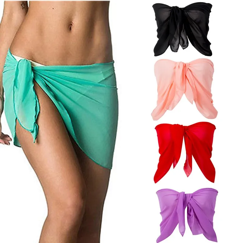 Женский короткий длинный прозрачный шифоновый саронг, новый пляжный купальник, бикини, накидка