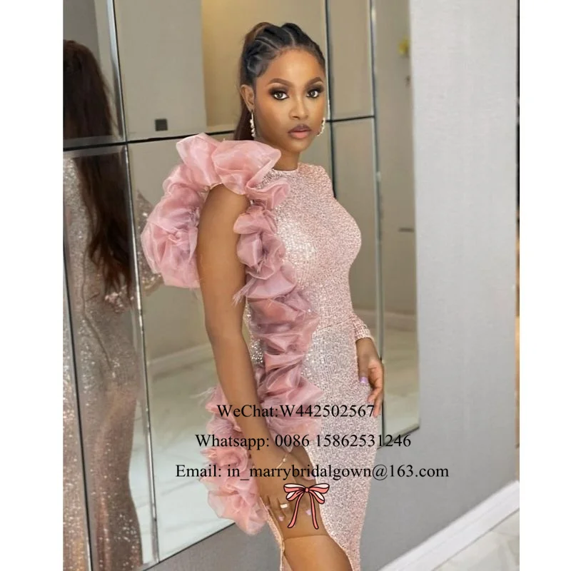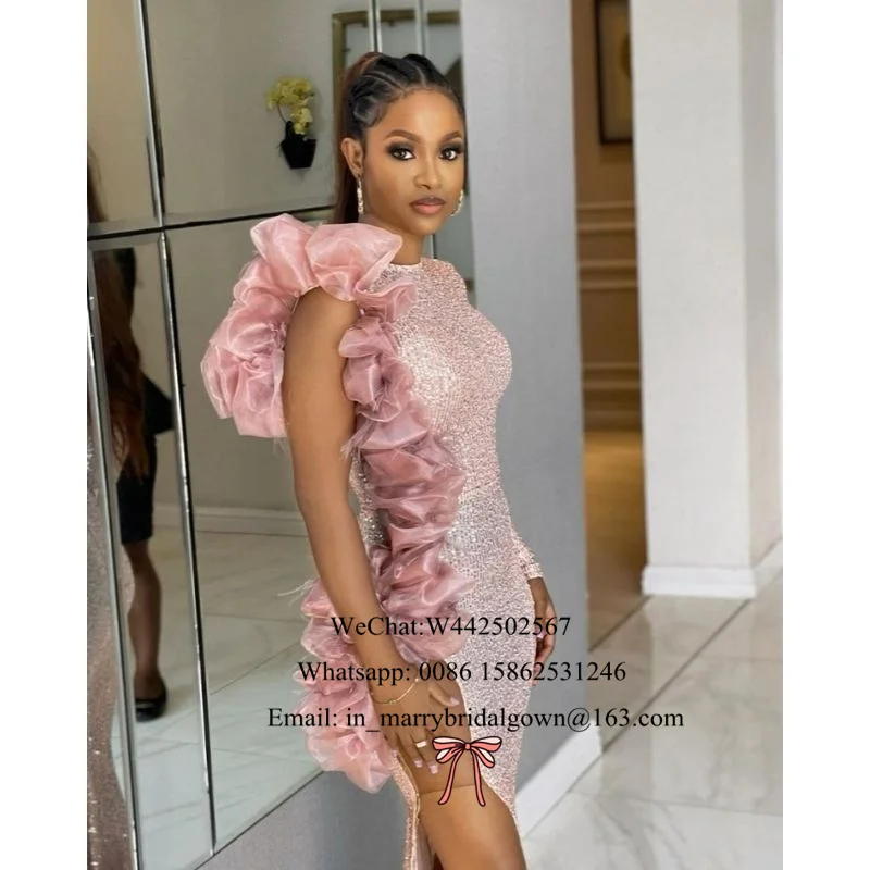 Розовое золото с пайетками вечерние платья для женщин 2021 одежда с длинным рукавом высокого Разделение для девочек, в стиле знаменитостей на выпускной, вечерние платья