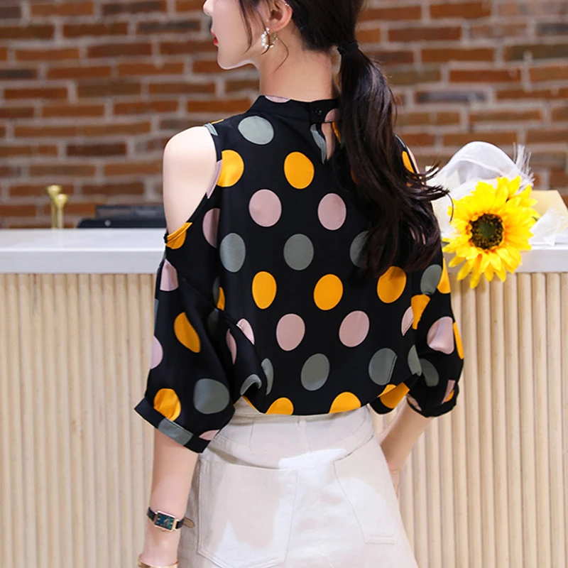 Блузка женская шифоновая в горошек, без бретелек, с рукавами-фонариками
