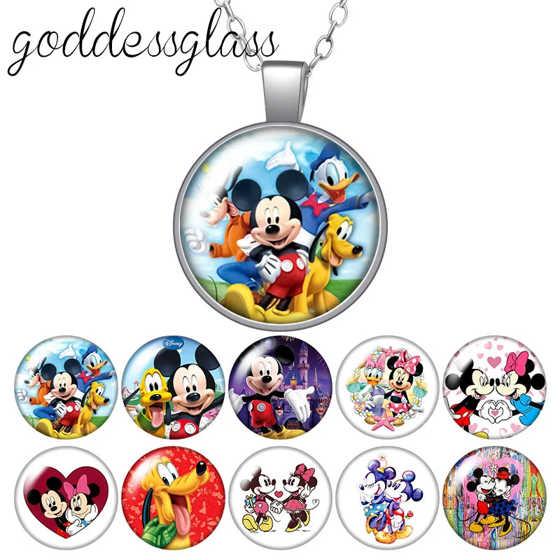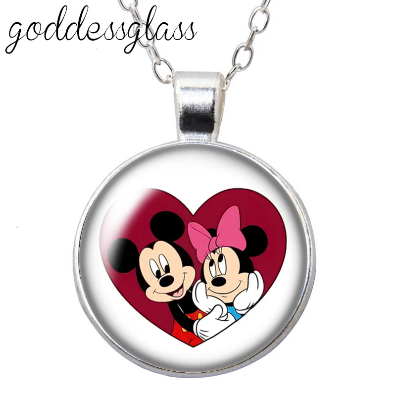 Ожерелье с подвеской Минни Маус, милая Подарочная круглая стеклянна...