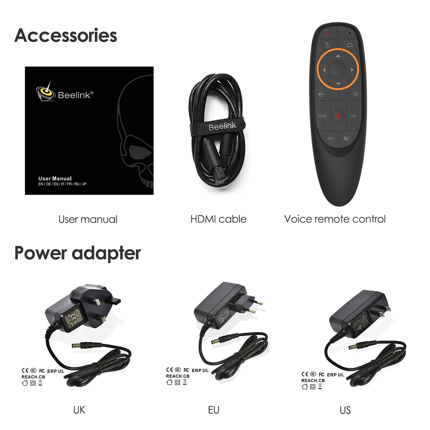 Beelink GT король WI-FI 6 Android 9,0 ТВ BOX Amlogic S922X 4 ядра, 4 Гб DDR4 64 Гб 2,4 г 5G WI-FI 1000 Мбитс 1000 м USB3.0 комплект компьютерной приставки к телевизору