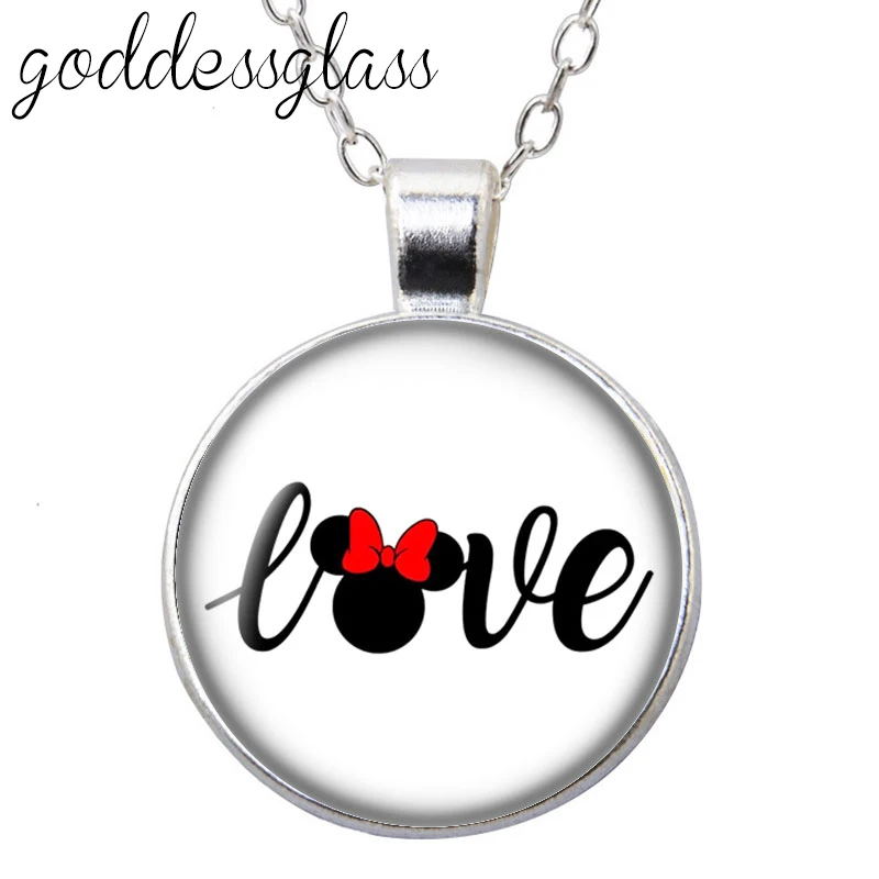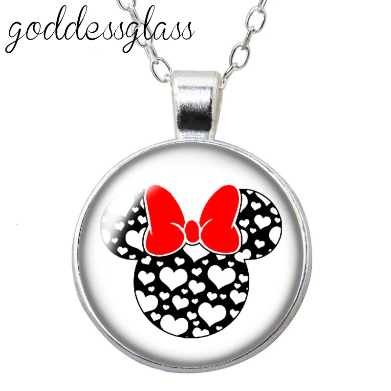 Дисней Минни Принцесса Милая мордочка Микки стекло кабошон посеребренныйхрустальный кулон ожерелье ювелирные изделия подарок