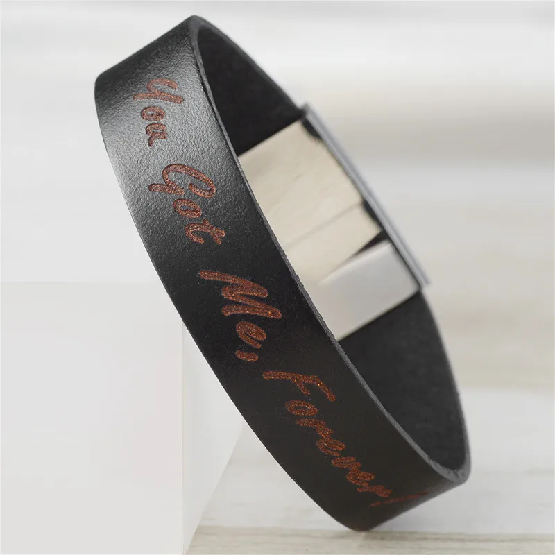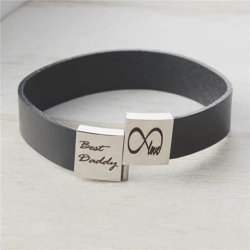 Персонализированные именные браслеты для мужчин из нержавеющей стали, натуральная кожа, двойная надпись, индивидуальный браслет для пар
