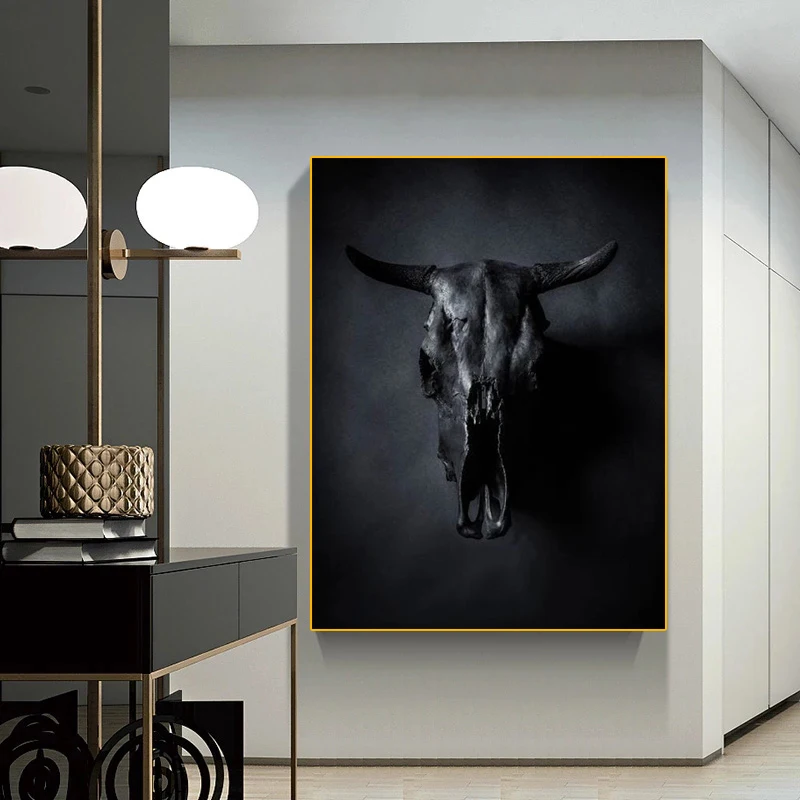 Настенная Картина на холсте с изображением черного быка, черепа, жи...