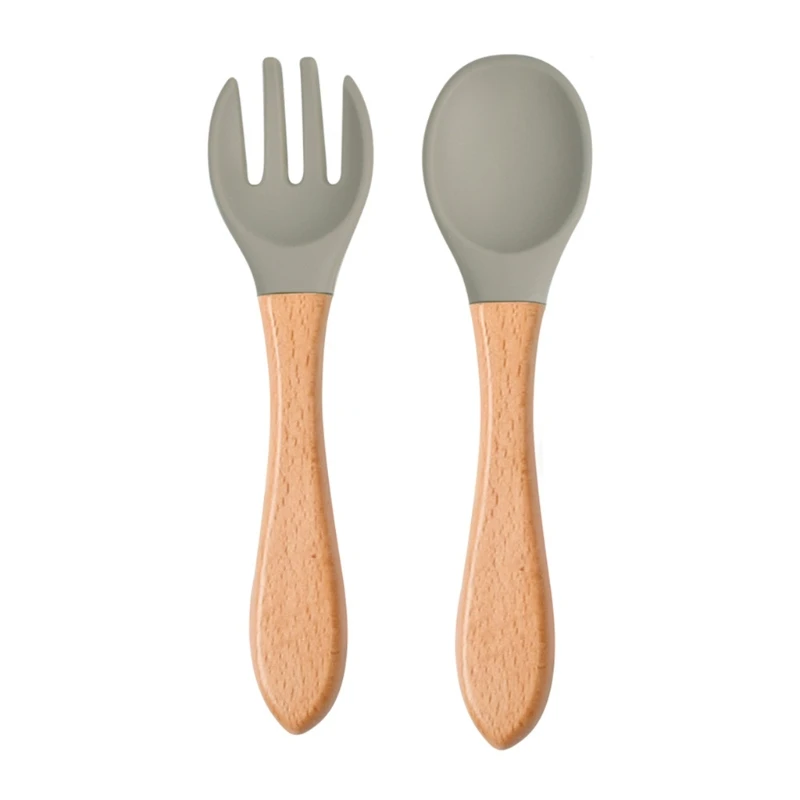 2 шт. силиконовых насадок для детских бутылочек, тренировочная ложка и вилка набор с деревянной ручкой для новорожденных, детей ясельного возраста, есть независимый аксессуар