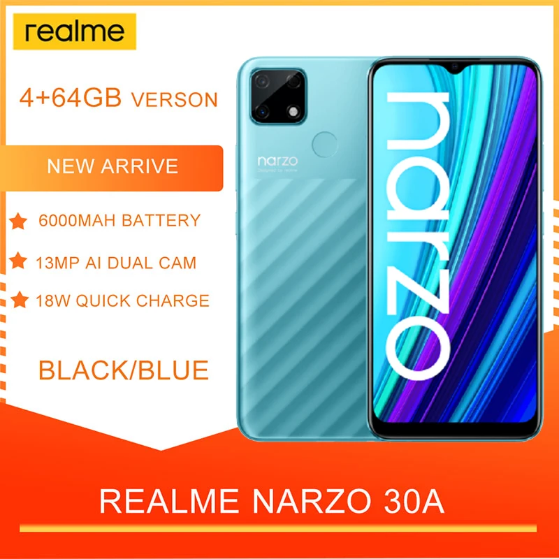 Смартфон Realme Narzo 30A, 4 + 64 ГБ, 6000 мАч, 6,5 дюйма, 18 Вт