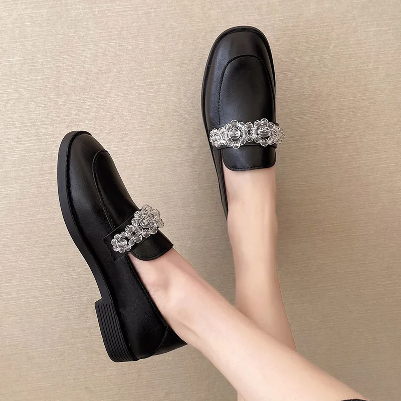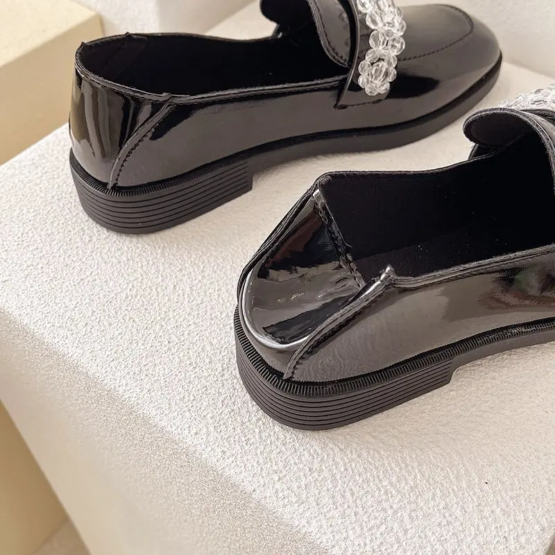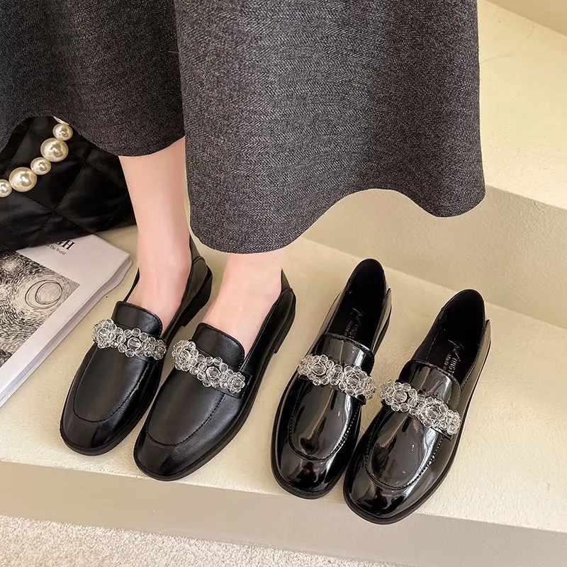 Женские лоферы из лакированной кожи, с цветами и кристаллами, слипоны, на низком каблуке, топ-сайдеры, женские туфли-оксфорды в стиле ретро, женские туфли на плоской подошве, 8952L