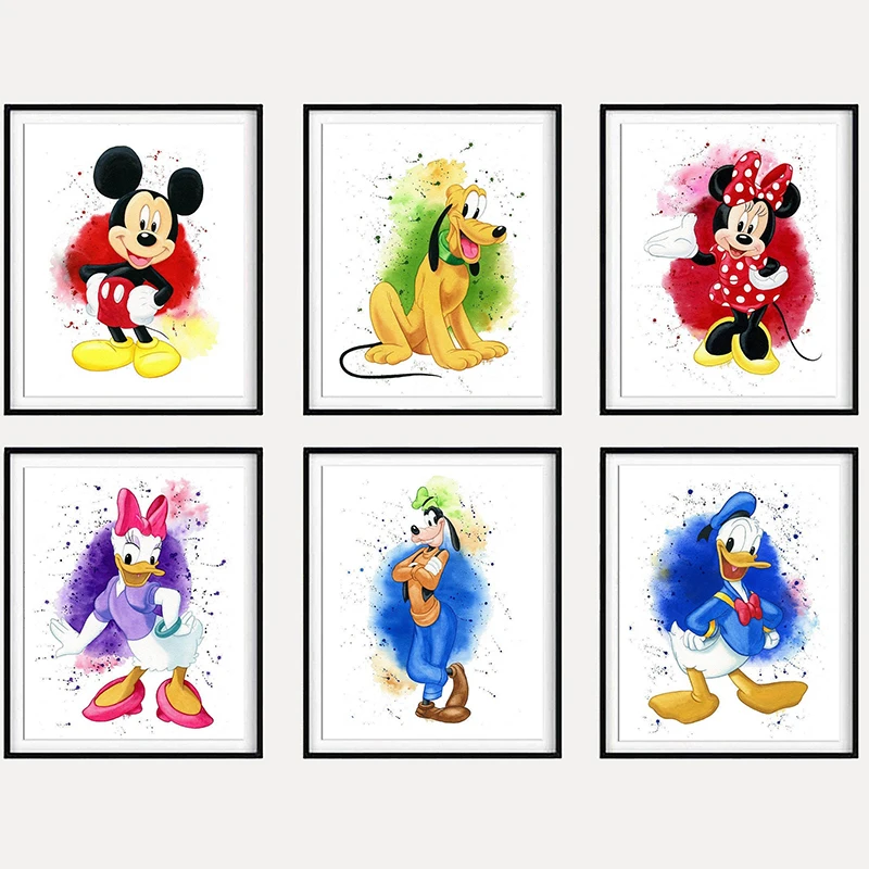 Disney живопись на холсте, Мультфильмы Микки Маус изображение Cusdros с Микки-Маусом и Минни-Маус плакаты и принты Qusdros для детской комнаты настенный Декор