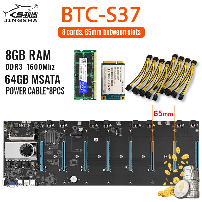 1 * S37 Mining mматеринская плата, 1*64 ГБ SATA SSD, 1*8 ГБ DDR3 1600 МГц RAM,