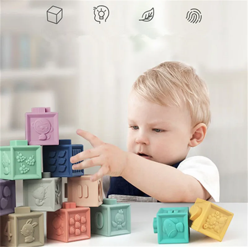 Детские игрушки для захвата, силиконовые строительные блоки, 12 шт....