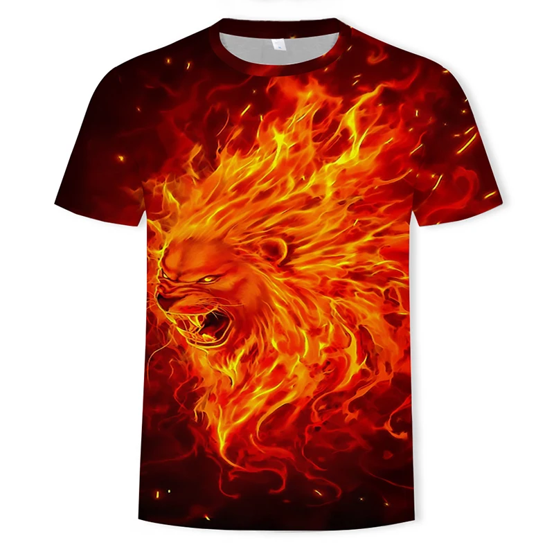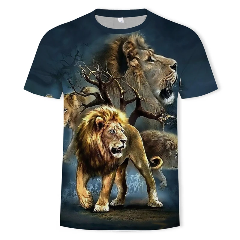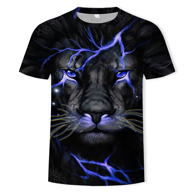 2021 Летняя мужская футболка с 3d-изображением львиного лица, Модные дышащие футболки унисекс с круглым вырезом и коротким рукавом и рисунком животных, размеры XXS-6XL