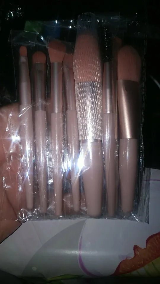 Пришло довольно быстро. В целом сами кисти за свою цену хорошие, думаю, что будет удобно брать в дорогу из-за небольшого размера. На ощупь приятные, выглядят не дешево, есть сильный запах. 4 звезды из-за чехла. Выполнен он некачественно, помятый (на втором фото видно). Конечно и цена небольшая, но я ожидала большего. В целом, если вам не важен внешний вид чехла, то брать можно, но я заказывала на подарок.