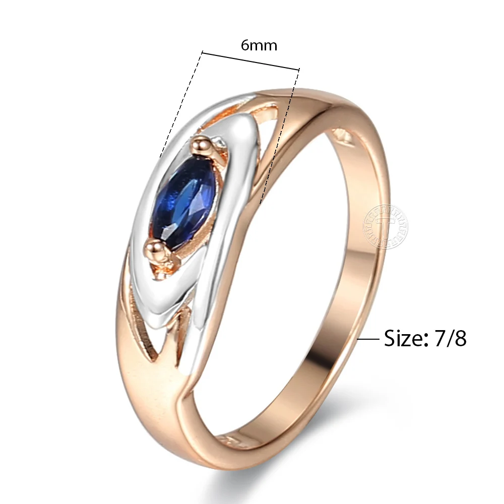 Кольцо женское из розового белого золота 585 пробы, 6 мм, с синим кубическим цирконием
