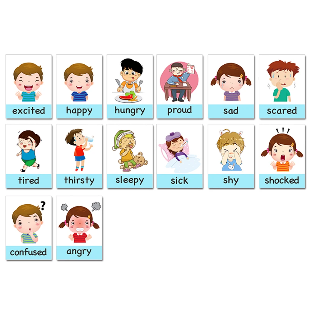 Детская обучающая карточка монтессори с эмоциями, карточки с мультяшным изображением погоды, английских эмоций, карточки для детей, забавная игра для упражнений с памятью