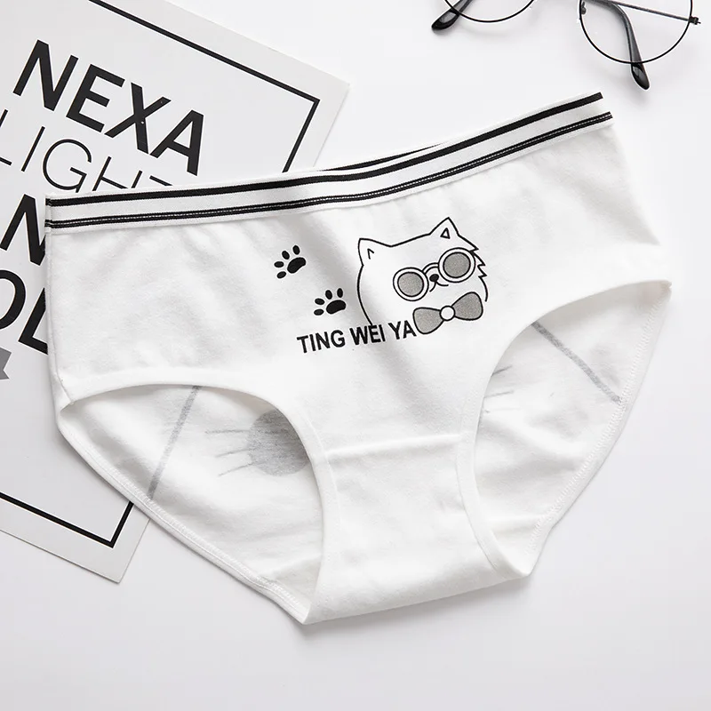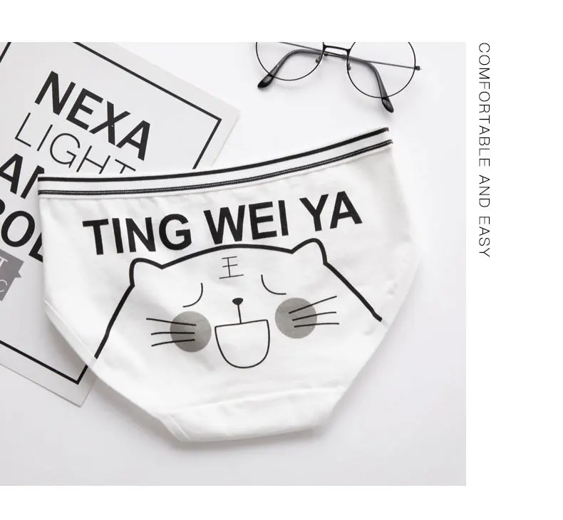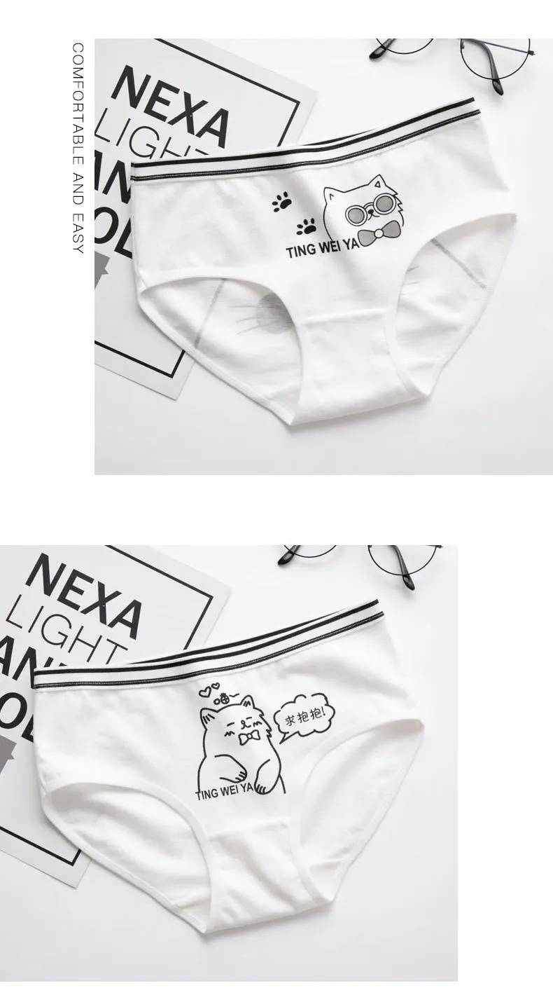 Простое милое черно-белое мультяшное хлопковое женское нижнее белье, дышащие Бесшовные трусики, Женские брифы средней посадки