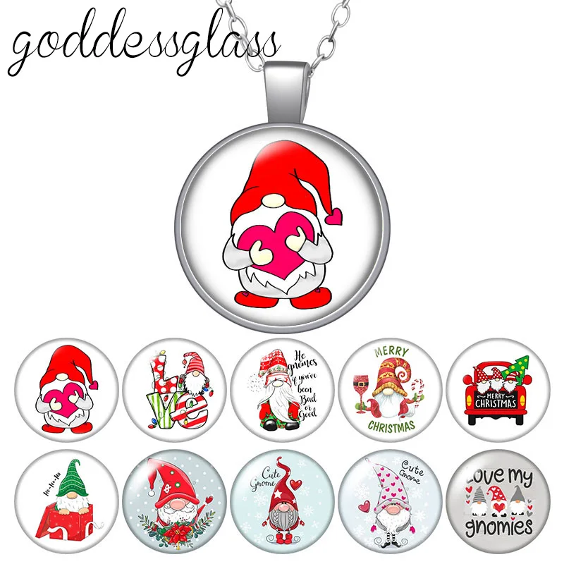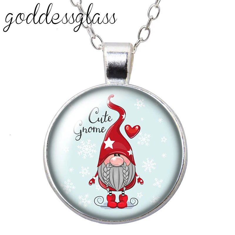 Новый рождественский милый гном санта-клаус круглый стеклянный кабошон посеребренныйхрустальный кулон ожерелье ювелирные изделия подарок