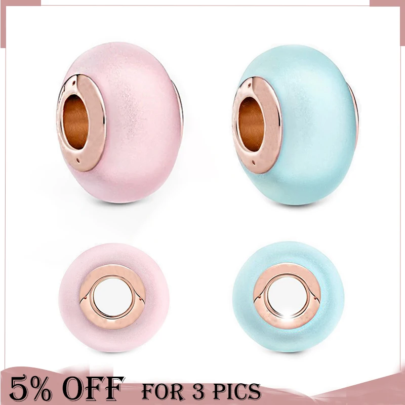 2021 День матери серебряные бусины 925 пробы Матовый Синий Розовый Шарм из муранского стекла, подходят к оригиналу Pandora, браслет для женщин, ювелирное изделие, подарок