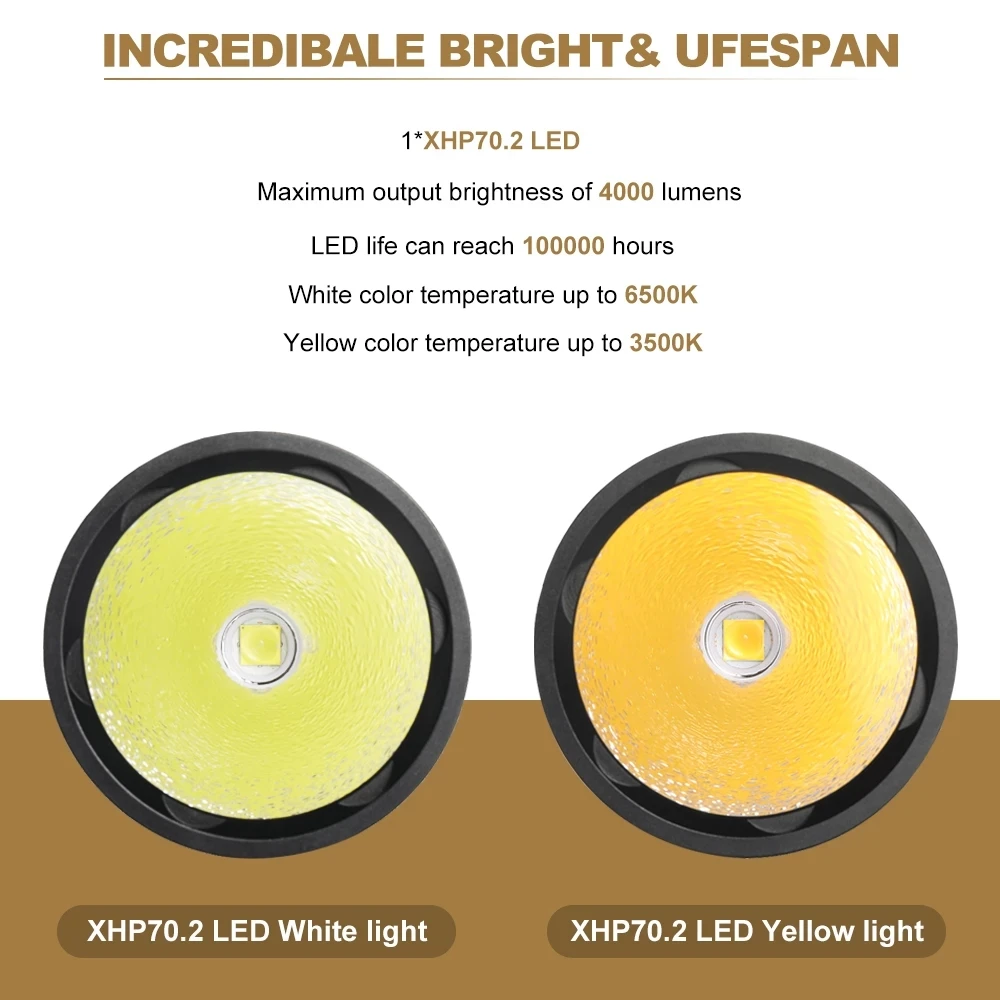 Мощный фонарь для дайвинга XHP70.2 подводный светодиодный фонарик 4000LM Фонари высокий Водонепроницаемый Профессиональный Дайвинг лампа для кемпинга