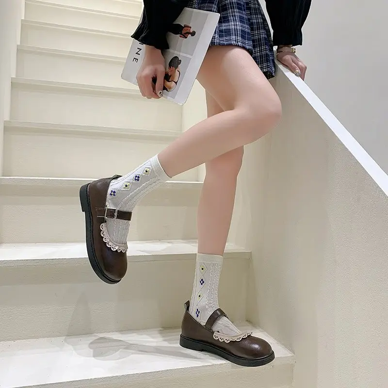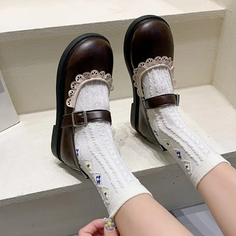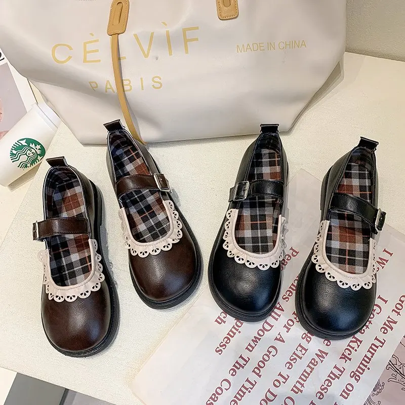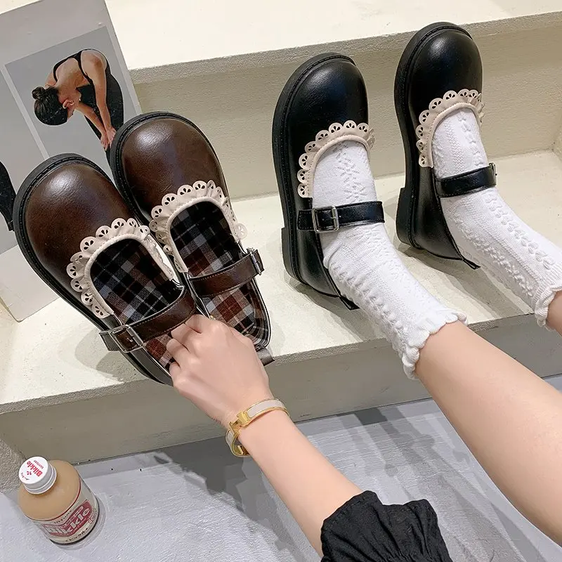 Туфли-Лолиты с оборками, Туфли Мэри Джейн, женские туфли на плоской подошве, туфли принцессы с круглым носком для девочек, туфли-оксфорды, ретро кружевные женские туфли 9177C