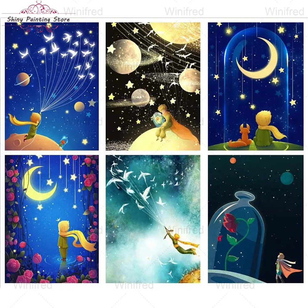 Алмазная живопись 5D, мультяшный Маленький принц, лиса, бриллиантовая вышивка, домашний декор, полноразмернаякруглая картина для стен