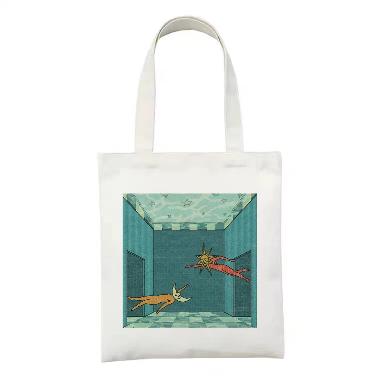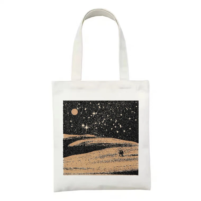 Женская Холщовая Сумка для покупок Sun Moon, сумка для книг, Женская Хлопковая сумка на плечо, Женская эко-сумка, многоразовая сумка для покупок