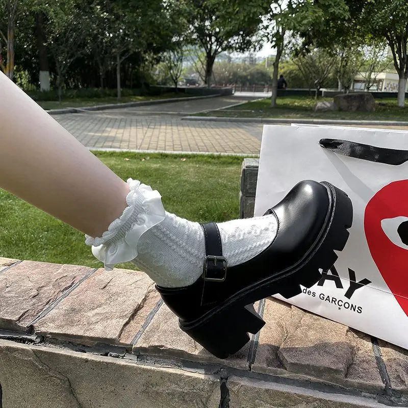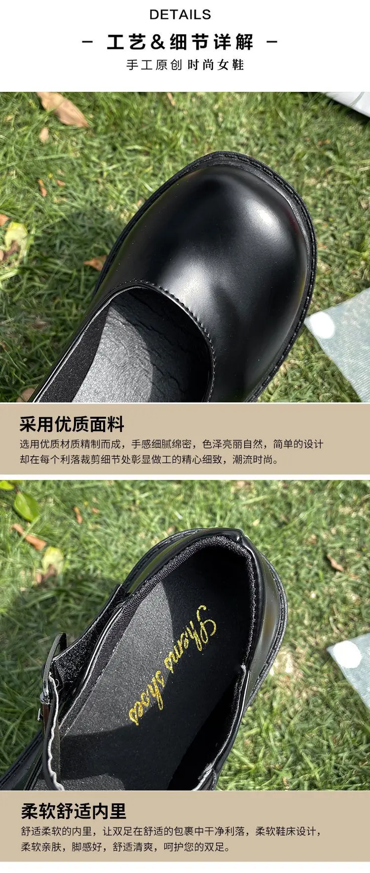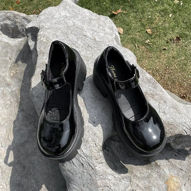 Обувь Mary Jane на платформе Harajuku; Маленькие кожаные туфли для женщин; Коллекция 2021 года; Женские туфли на не сужающемся книзу массивном каблуке с пряжкой на ремешке; Косплей туфли Лолиты для девушек
