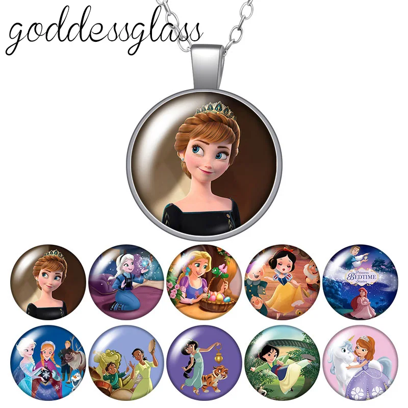 Круглое ожерелье с кулоном в виде Принцессы Диснея, Эльзы, Анны, Бе...