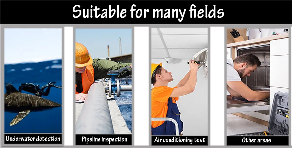 Этот продукт подходит для осмотра трубопровода, канализационных труб, воздуховодов, резервуаров, подводных и других темных условий, проверки внутренних трещин, коррозии, сварки, затычек и других необычных обстоятельств.