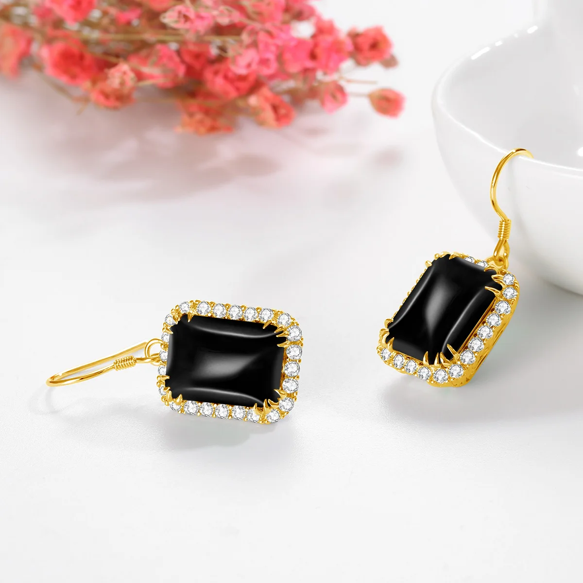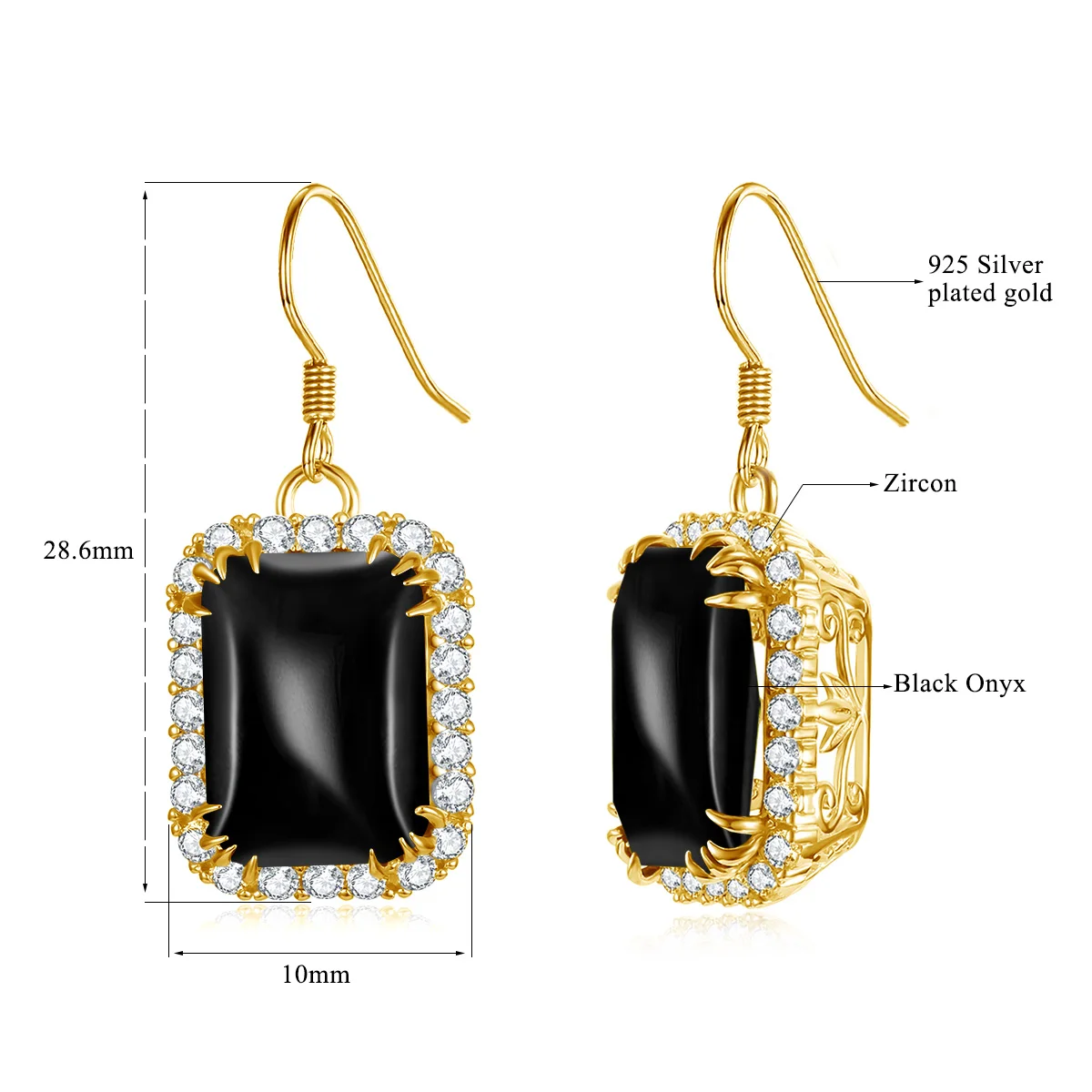 Основной тип камня: синтетический черный оникс Форма основного камня: прямоугольник Метод Создания камня: лаборатория Метод обработки камня: без обработки Тип металла: Настоящее 925 пробы серебро Цвет металла: Золотой/Серебряный Упаковка: 1 * Серебряная полировальная ткань, 1 * Изысканная Подарочная коробка, 1 * пара драгоценных камней серьги