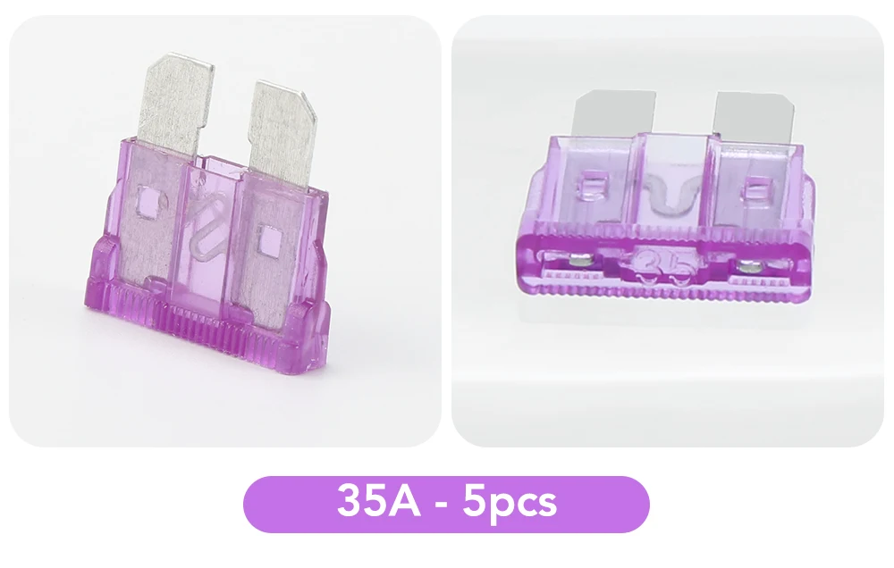 2A/3A/5A/7.5A/10A/15A/20A/25A/30A/35A, 10 видов стандартных плавких предохранителей.