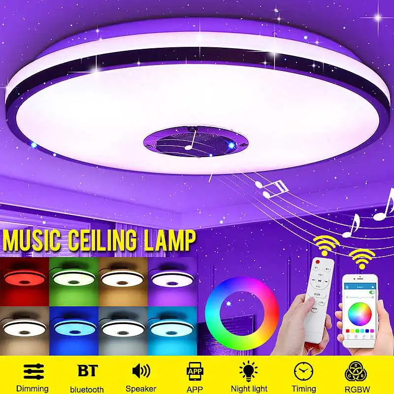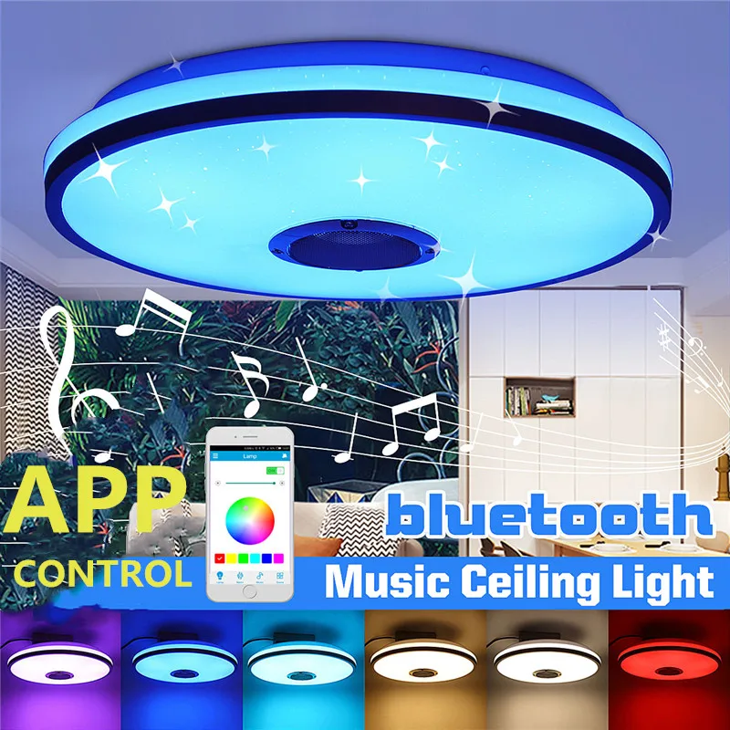 220V современные потолочные светильники затемнения светодиодный RGBW Bluetooth Динамик лампа для контроля уровня громкости приложение Дистанционное Управление дома вечерние украшения освещение