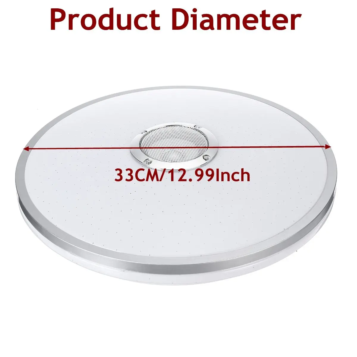 * Изготовлено из Высококачественная светодиодная микросхема, толстый акрил, который обеспечивает долгий срок службы, долговечный для использования.* Умное управление: светильник может управляться различными способами, такими как настенный выключатель, мобильное приложение и пульт дистанционного управления, что обеспечивает более удобство управления.* Мульти-Режим работы: он имеет много режимов, белый светильник, теплый светильник, нейтральный светильник, прочный светильник, режимы сцены, такие как музыкальный ритм, градиент, красочный светильник с подсветкой, чтобы удовлетворить ваши различные потребности гибко, очень практично для вашей повседневной жизни.* Мобильное приложение и bluetooth могут регулировать яркость, менять цвет, пульт дистанционного управления может включать и выключать светильник, регулировать яркость и цвет, воспроизводить песни, регулировать громкость, это такой умный потолочный светильник, который изменит вашу концепцию на потолочный светильник, Это как верный компаньон, который позаботится о вашем настроении.* Энергосбережение: с ярким источником высокой мощности Светодиодный светильник, экономия большой мощности по сравнению с тем же уровнем яркости нормальный светильник, который не применяется светодиодный чип, экологически чистый.Характеристики:Диаметр: 33 см