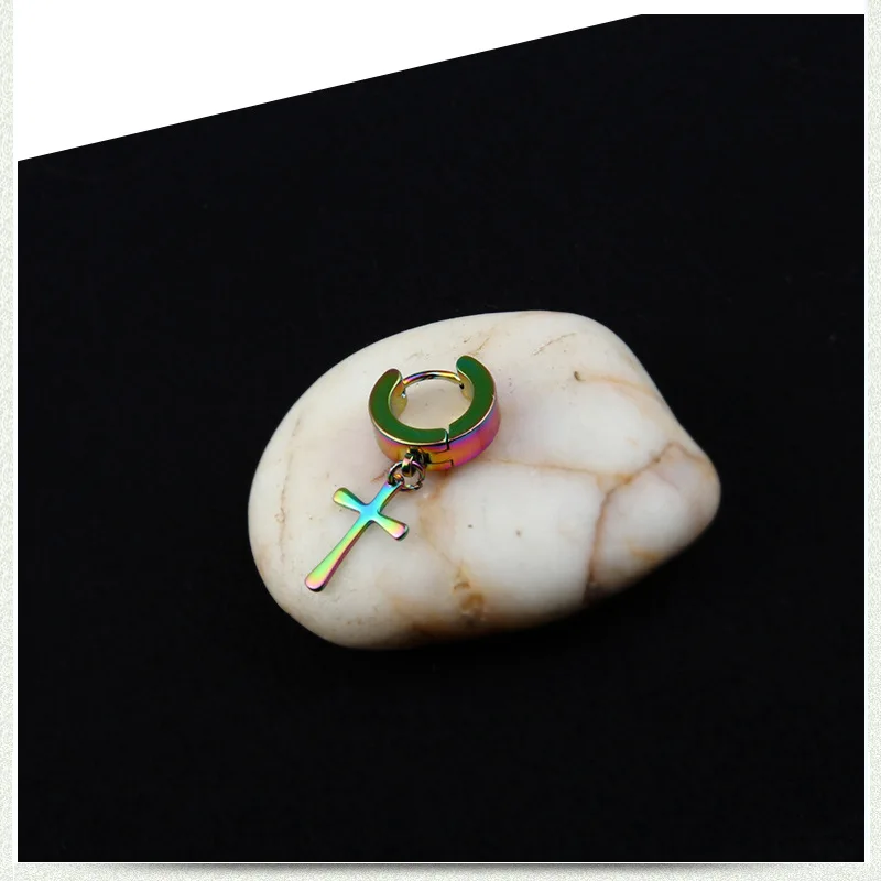 Мужские Клипсы из титановой стали в стиле панк, серьги-гвоздики с крестом в стиле рок, крутая бижутерия, серьги 2021 провод