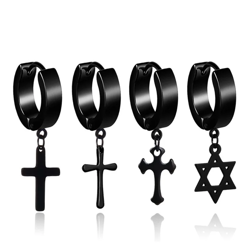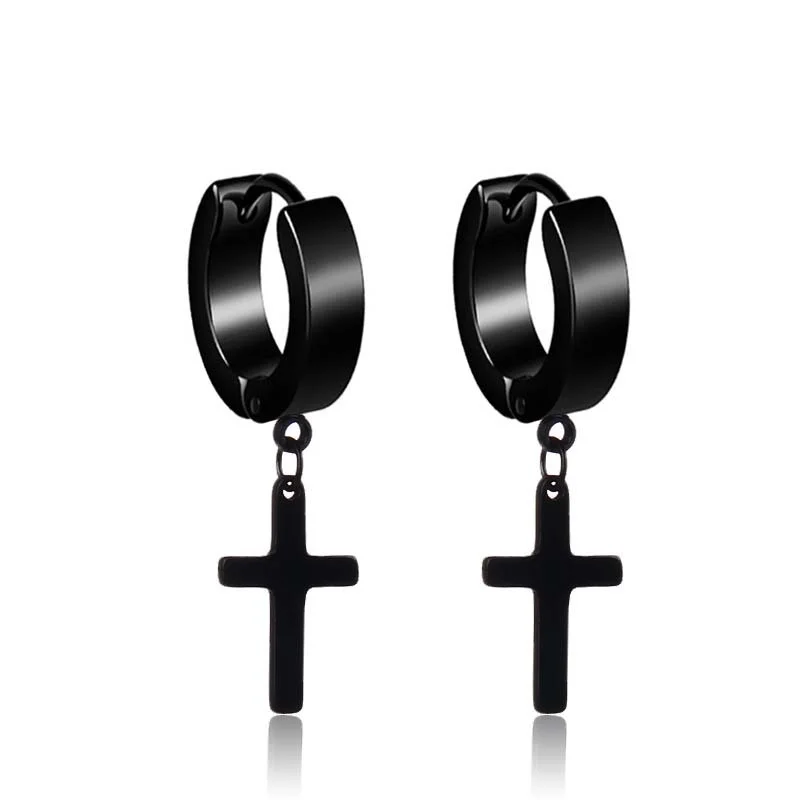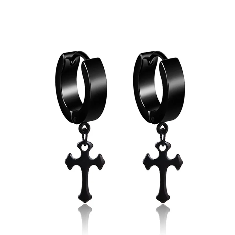 Серьги-кольца женские, мужские, из нержавеющей стали, с черным крестом