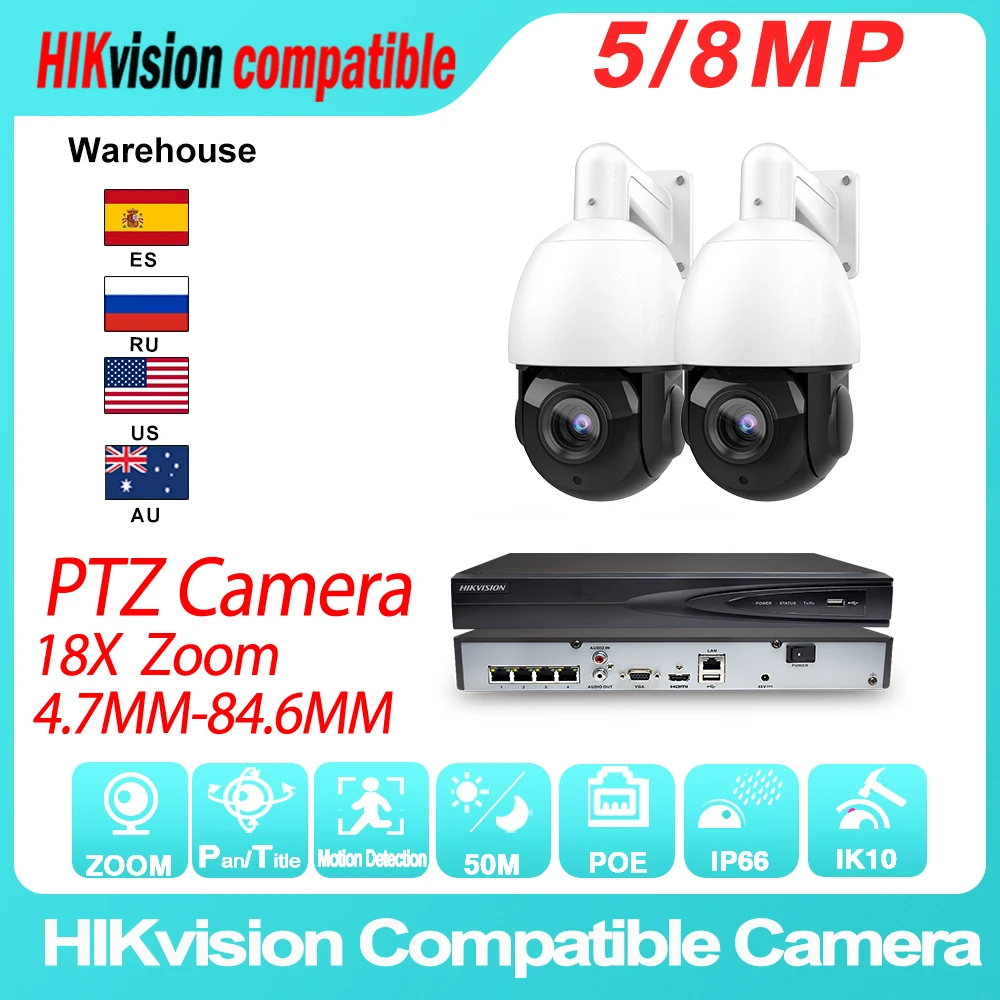 5 Мп: 1/1/2 "5 мегапикселей CMOS8MP:1/1/2 "8 мегапикселей CMOSМощный 18X оптический зум, цифровой зум 30XWDR, день/ночь (ICR), DNR5 Мп: Макс.20fps 5MP / 30fps 4MP8 Мп: Макс.20fps 8MP / 30fps 6MPДиапазон сковороды:От 0 до 360 °,Диапазон наклона:От-15 до 90 °Поддержка PoEСовместимость: HIKVISION,ONVIFIP66