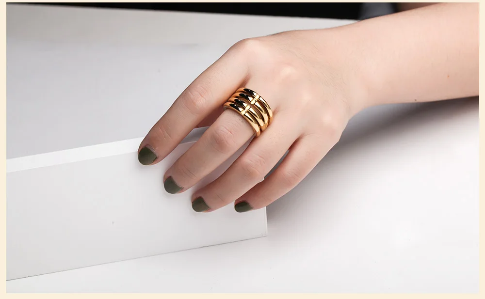 Кольцо женское многослойное из нержавеющей стали золотого цвета