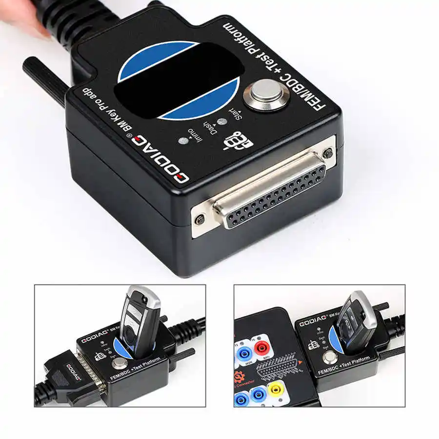 1. Работая вместе с Godiag GT100 и xhorse vvdi 2/для bmw VDI bim tool / Autel im608 и т. д., Godiag FEM / BDC тестовая платформа Может программировать новый ключ, можно добавить новый ключ и заменить FEM / BDC ECU модуль.