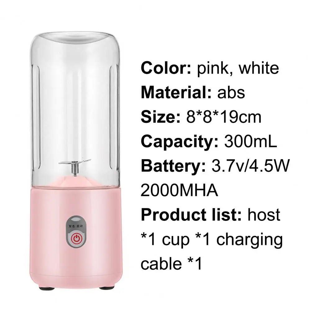 Электрическая соковыжималка, портативная мини-соковыжималка для фруктов с USB-зарядкой, 300 мл, кухонная соковыжималка, Кухонный комбайн для фруктов, Электрический кухонный миксер
