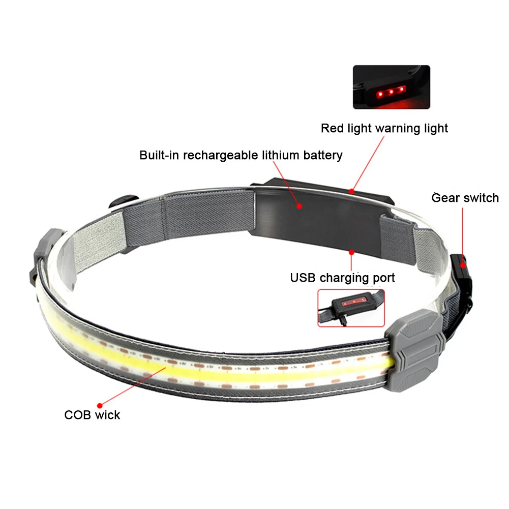 Головной фонарь для бега, кемпинга, 1 шт., портативный мощный налобный фонарь, наружное освещение, COB светодиодный налобный фонарь, широкоугольный налобный фонарь