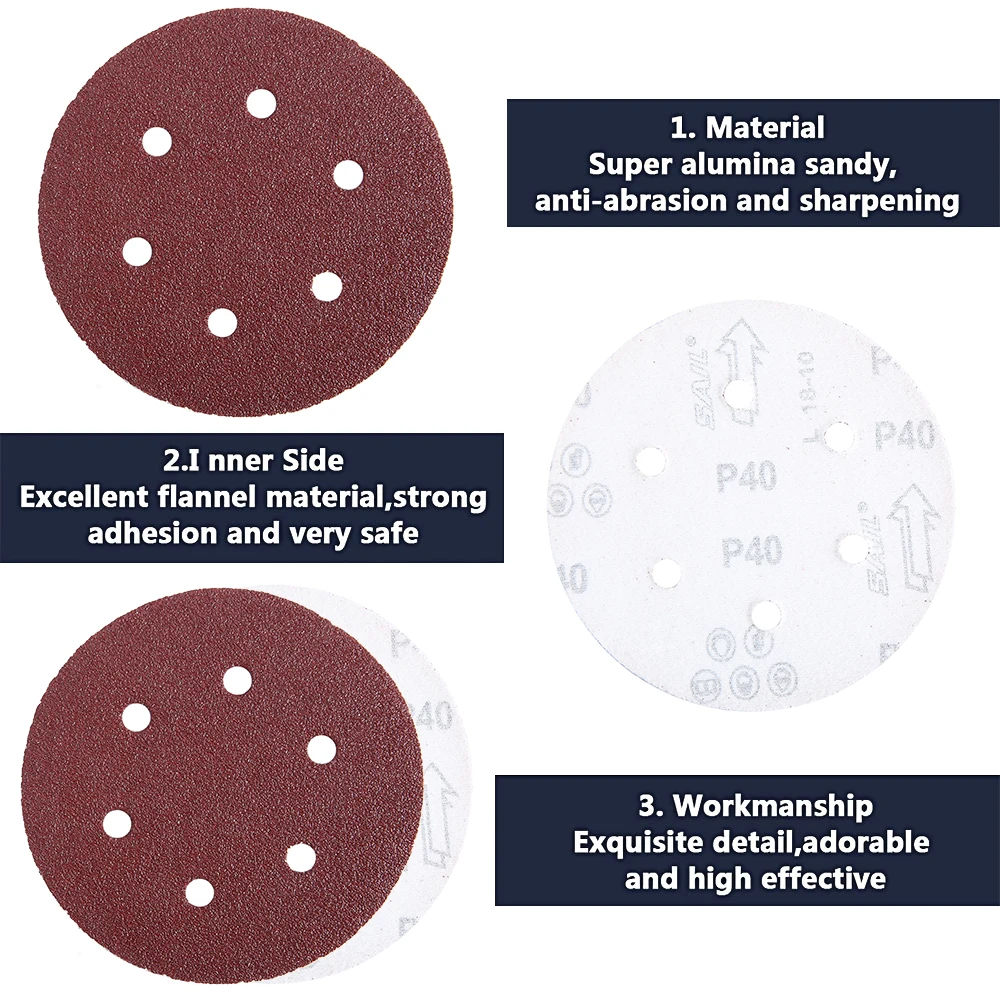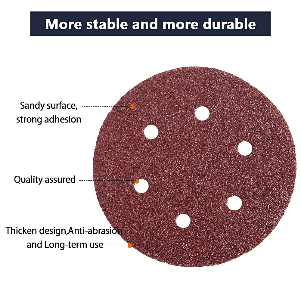 Наждачная бумага, 100 мм, 6 дюймов, 6 отверстий, Зернистость 40-150, 800 шт.