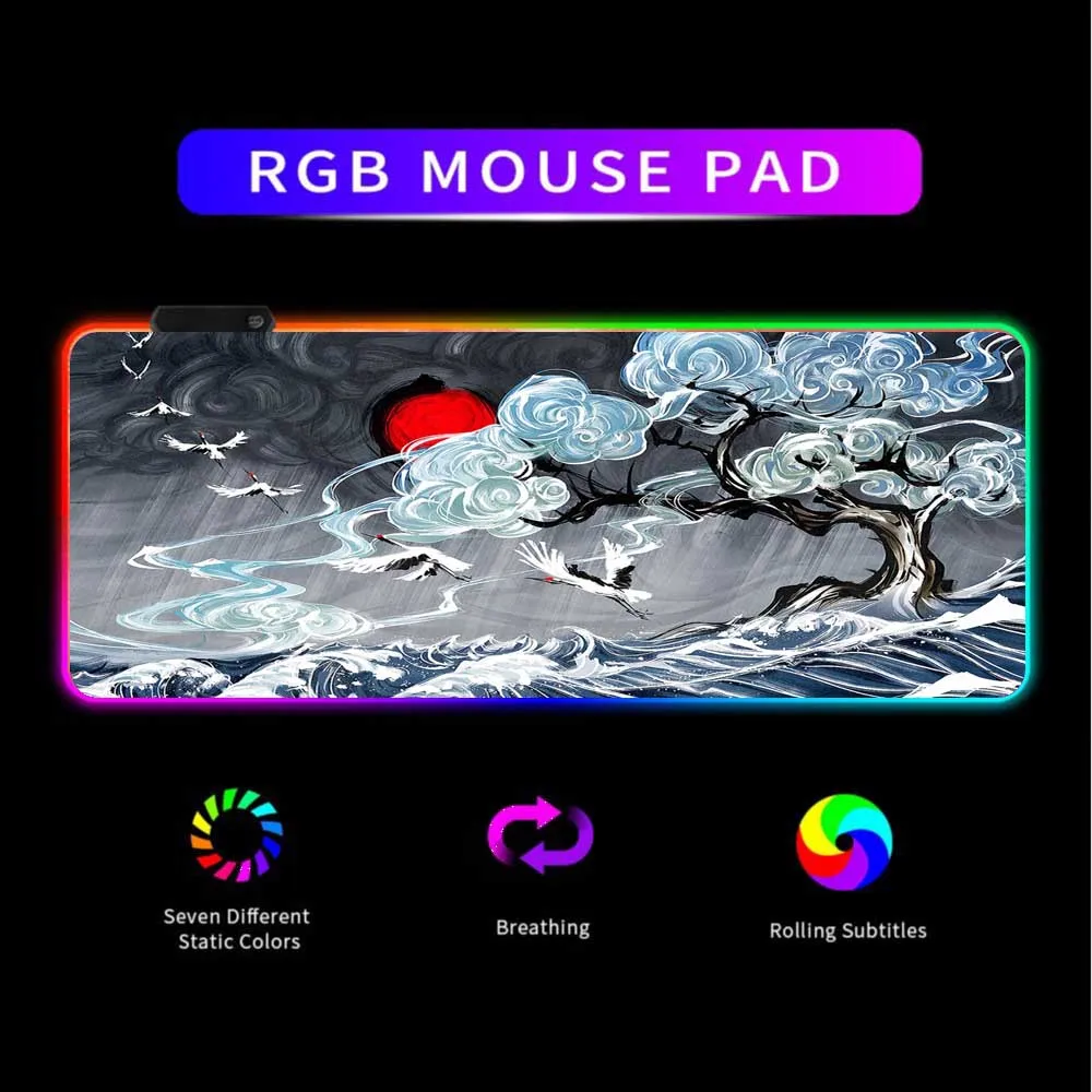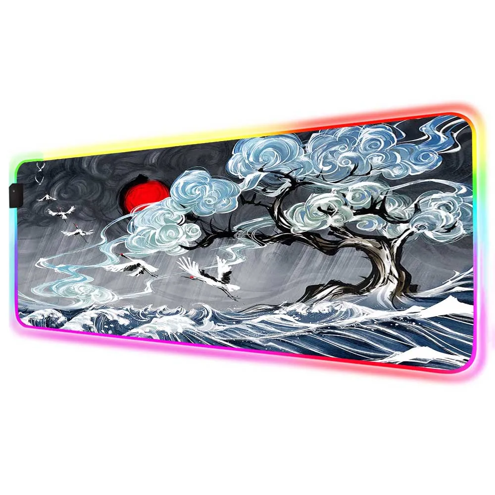 Коврик для мыши XGZ с аниме-рисунком, игровой RGB коврик для клавиатуры, светодиодный ка для мыши в стиле пейзажа океана, размер XxL